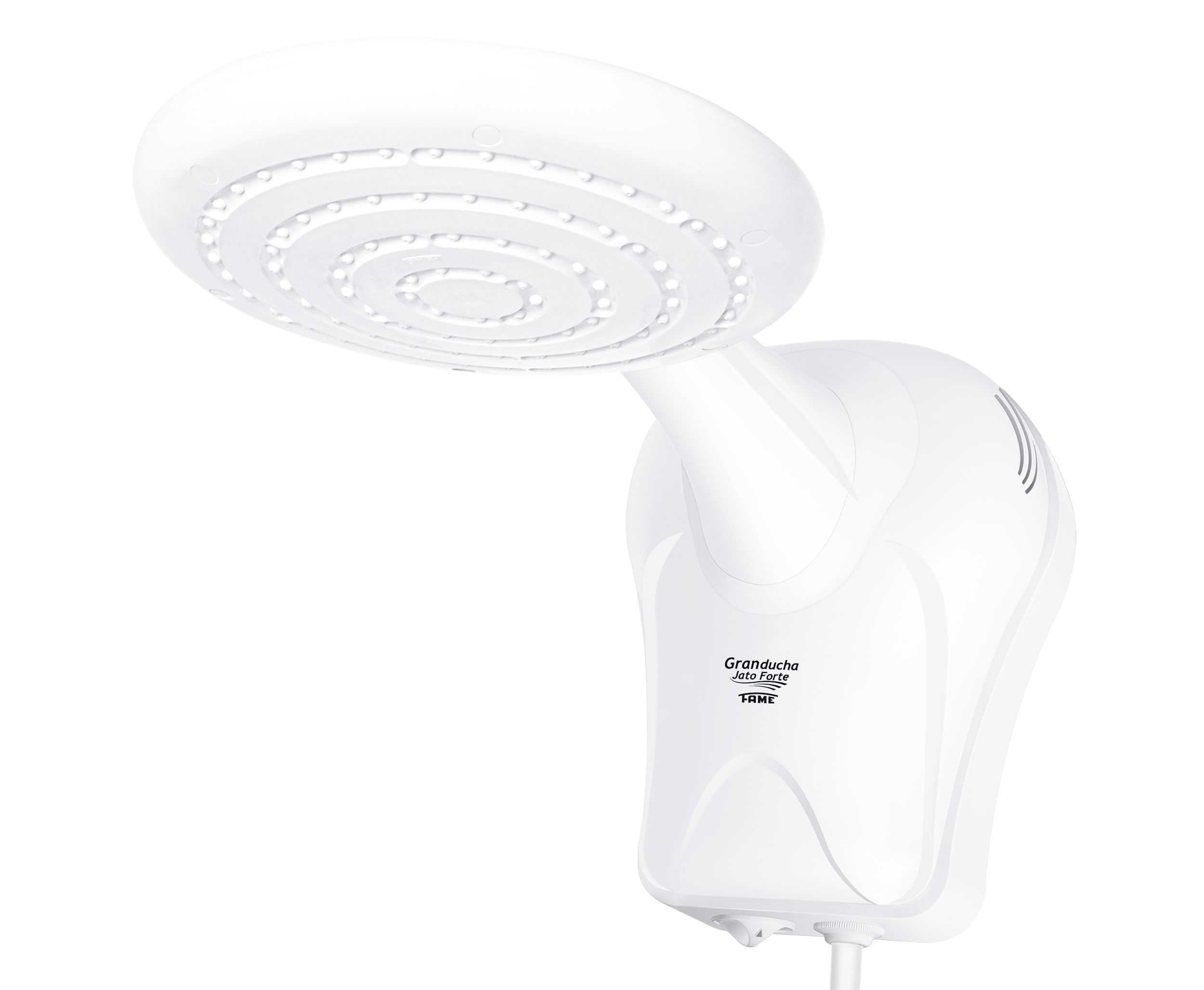 Dotada de um design diferenciado e exclusivo sistema eletrônico de controle de temperatura, equipada com pressurizador que amplia o fluxo e a vazão de água e um espalhador de água projetado para oferecer o maior volume de água, a GranDucha Jato Forte FAME traz a proposta de unir todos os atributos de um produto inovador para você e sua família desfrutarem de uma experiência ímpar em um banho agradável, revigorante e seguro.