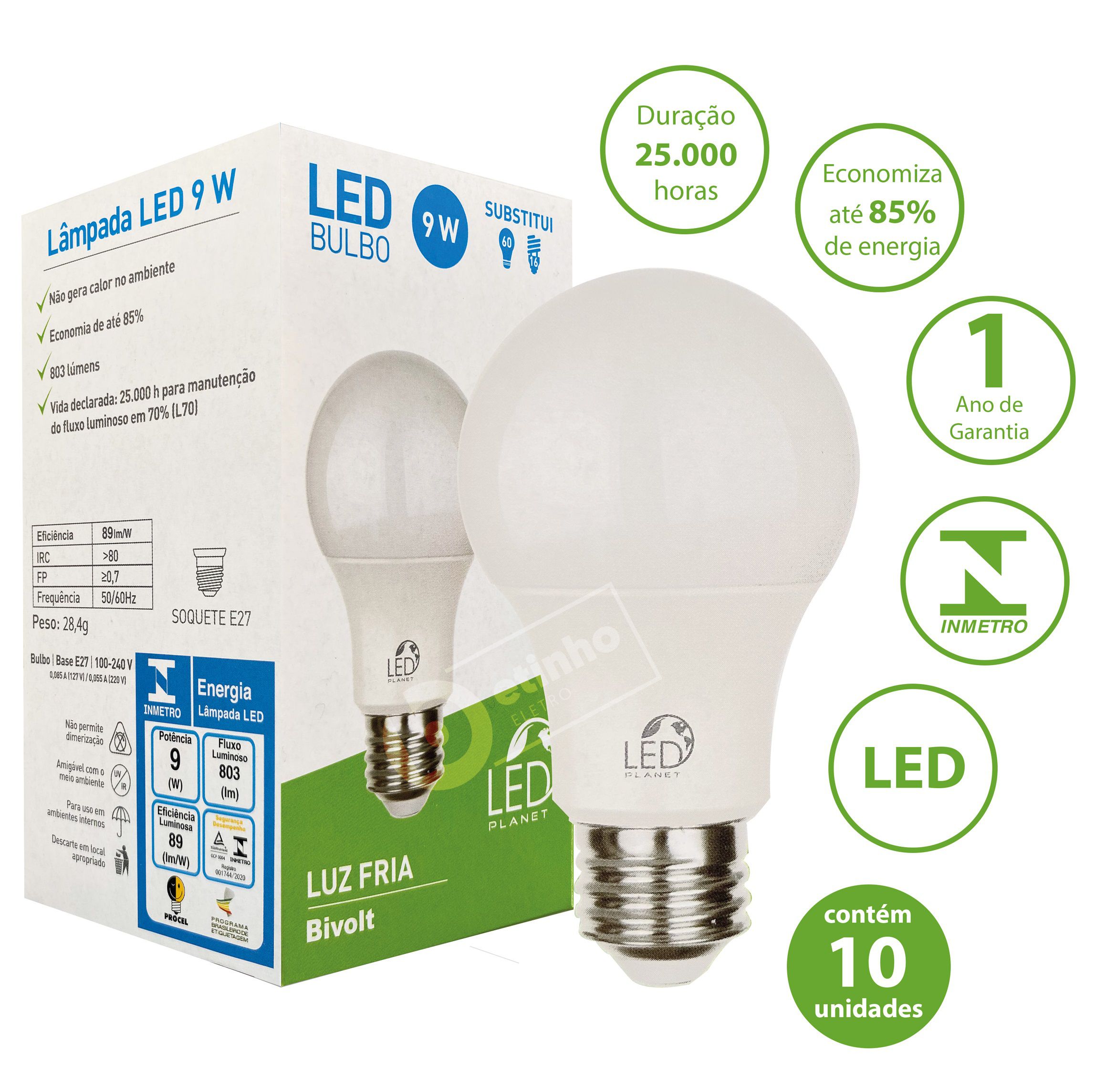 Kit 10 Lâmpadas Led 9w Bulbo Soquete E27 Bivolt
